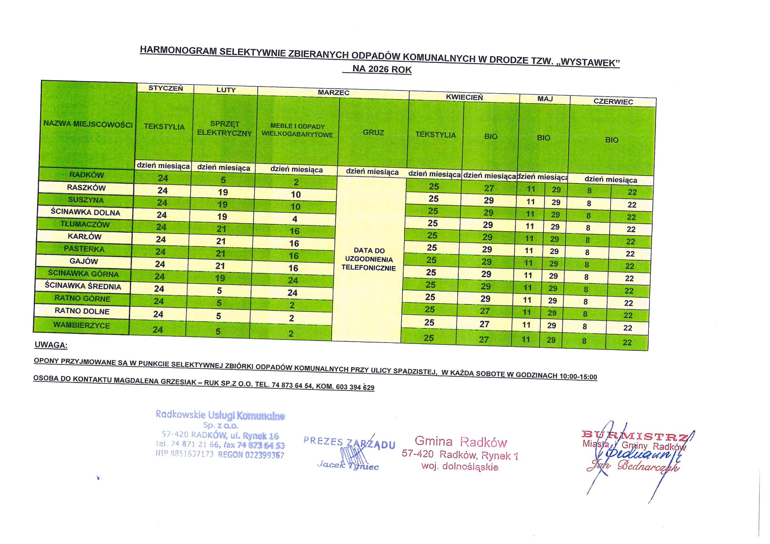 Harmonogram wywozu selektywnie zbieranych odpadów komunalnych w drodze tzw. „wystawek” na rok 2026 Zostaw komentarz / Aktualności / Przez